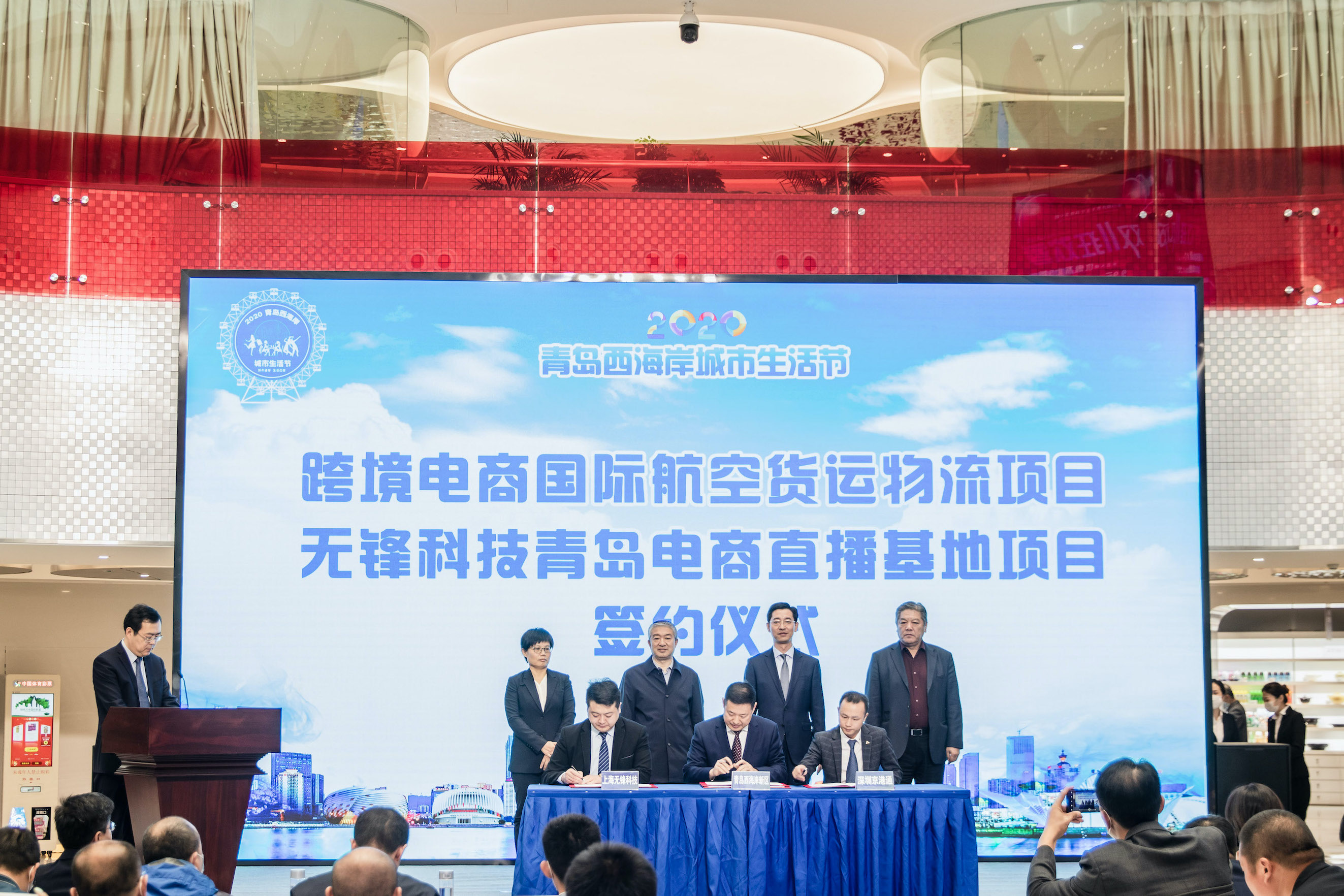 當天,跨境電商國際航空貨運物流項目和無鋒科技青島直播電商基地項目也在青島西海岸新區簽約落地。