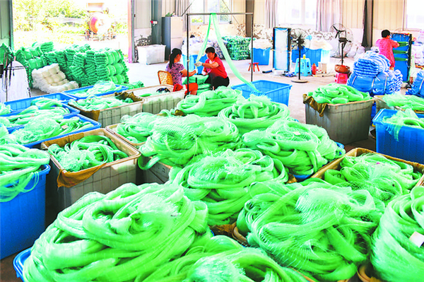 槐林鎮這個歷史上以漁為生、靠漁為業的巢湖岸邊小鎮,改革開放以來依託漁網編織特色產業發展經濟,逐漸形成了集紡絲、織網、定型、染色、裝扎、銷售的漁網「一條龍」產業鏈。目前,常住人口8萬人的槐林鎮,全鎮從事漁網生產、加工、銷售等相關企業400餘家,擁有28項發明專利、200餘項實用新型專利,登記在冊網機2744台、拉絲生產線122條、定型等機械116台套,直接從業人員近3萬人,近400人的營銷隊伍在國內外「跑業務」,產品遠銷歐洲、非洲、南美洲、東南亞等60多個國家及地區,是全國最大的漁網生產基地,被譽為「中國漁網第一鎮」。 近年來,槐林鎮為扶貧方向「把脈」,利用漁網產業闖出脫貧攻堅的新路,先後投入扶貧資金1798.17萬元,建成8個漁業扶貧產業基地、5個扶貧車間、4個產業園,直接分紅惠及貧困戶2213人,到村覆蓋率100%。全鎮1182戶貧困戶全部脫貧,就連行動或外出不便的509戶貧困戶,均實現居家「網上就業」。(鄭成功 袁兵 龔舒斌)