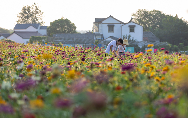 秋日的谷里街道徐家院村,灰牆黛瓦尖頂的建築點綴在青山綠水間,阡陌縱橫的鄉村中,數十畝花田在起伏的丘陵上徐徐展開。近年來,江寧區在江蘇率先展開美麗鄉村建設,讓曾經老、舊、土的鄉村刷新顏值,成為江寧閃亮的名片。徐家院若谷精品民宿去年6月剛剛開業,全部35間客房,近100張床位就已經被攜程「包圓」,納入獨家預定渠道。每到節假日,這裏就一房難求,來自南京周邊華東地區的遊客在此賞花、觀星、夜遊、讀書、飲茶,盡情享受田園鄉居的休閒時光。