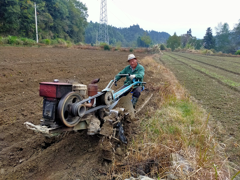 秋日的安徽休寧縣溪口鎮,美麗的田園風光宛若一幅幅畫卷。11月2日,在該鎮江潭村鴻明家庭農場內,該村幾位貧困戶正在百畝農場裏辛勤的勞作,拖拉機伴著“噠噠”的歡快聲在田間奔跑。