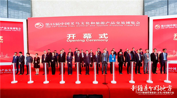 11月8日,由文化和旅遊部、中國貿促會、浙江省政府共同主辦的第15屆中國義烏文化和旅遊產品交易博覽會在浙江義烏國際博覽中心開幕。博覽會上,「新疆是個好地方」2020新疆冬季旅遊主題推廣營銷活動首場義烏專場推介會同時舉行。