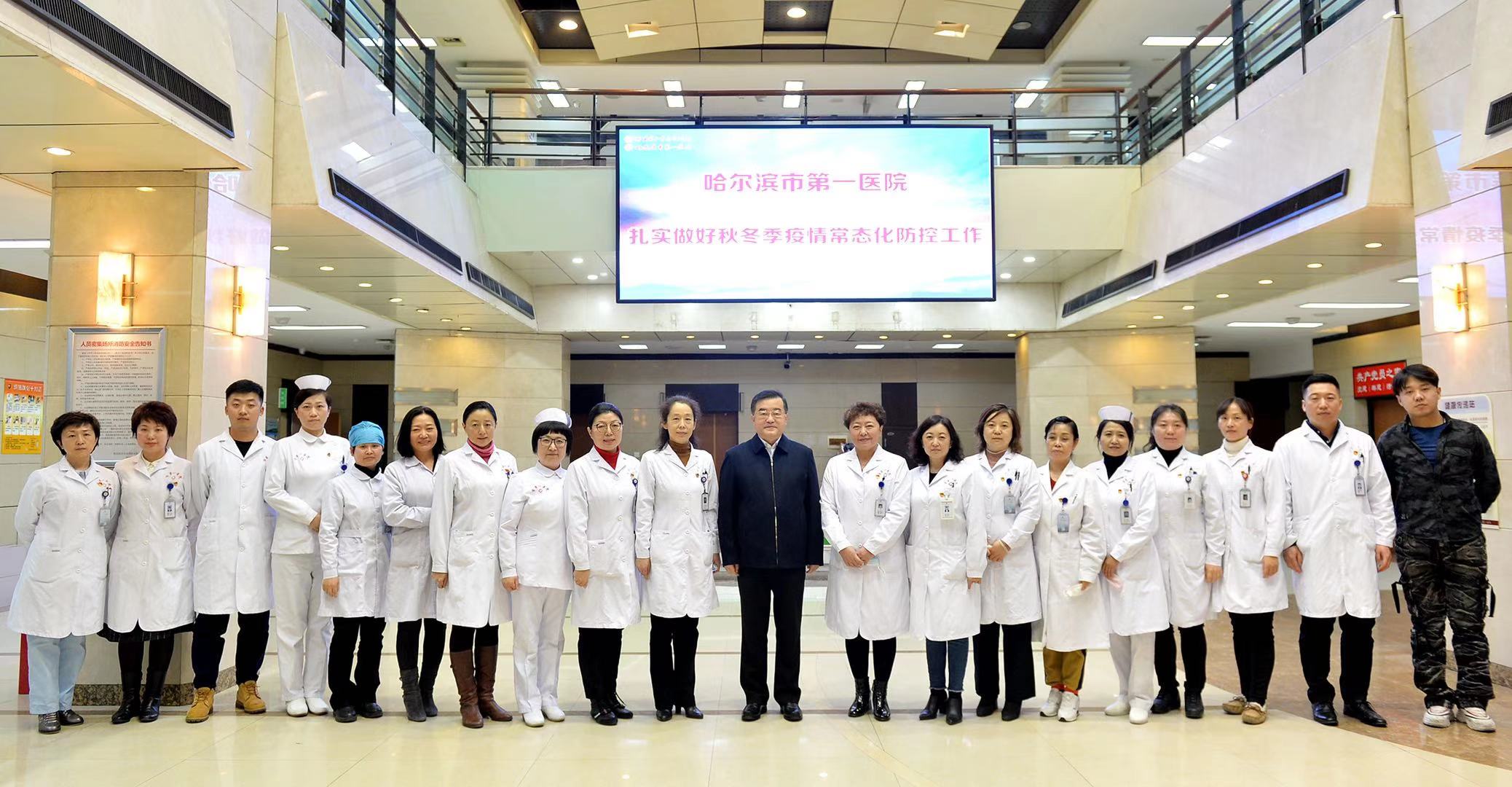 作為市屬醫療衛生系統龍頭單位,哈爾濱市第一醫院在黑龍江省衛生系統佔有重要地位,在抗洪、抗災、抗震、防疫,援疆、援藏、援非等各個歷史時期的重大及突發事件的醫療救治中,始終衝鋒在前。此次疫情防控中,市一院承擔了市級發熱門診定點醫院、歸國人員非新冠肺炎疾病定點收治的任務。面對就醫需求激增、醫療資源有限等等多重壓力,全院職工迎難而上,按照上級疫情防控精神在醫院本部、省內支援、援鄂分隊開展了多點作戰。截止2020年11月4日,市一院千餘人次醫務人員參與抗疫工作,發熱門診接診2694人次,留觀人數1363人次,本土診斷病歷13例,歸國人員1例,歸國人員救治55人次,專家團隊24小時電話為隔離點醫務人員及患者提供指導370人次。全院醫務人員零感染,無院內感染。