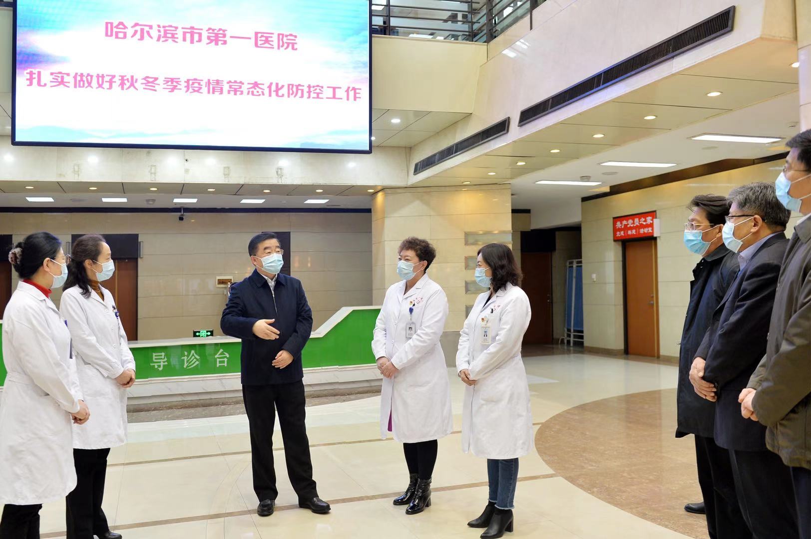 11月5日下午,黑龍江省委書記、省人大常委會主任張慶偉深入哈爾濱市檢查指導今冬明春疫情防控工作,首站來到具有107周年歷史的哈爾濱市第一醫院視察。張慶偉代表省委、省政府向奮戰在疫情防控一線的醫務工作者表示慰問和感謝。黑龍江省委常委、秘書長、辦公廳主任張雨浦、黑龍江省委常委、哈爾濱市委書記王兆力、黑龍江省委常委、宣傳部部長賈玉梅、黑龍江省政府副省長孫東生及有關部門領導參加檢查指導。哈爾濱市第一醫院院長李虹、黨委書記錢朝霞等班子及相關科室人員陪同視察。