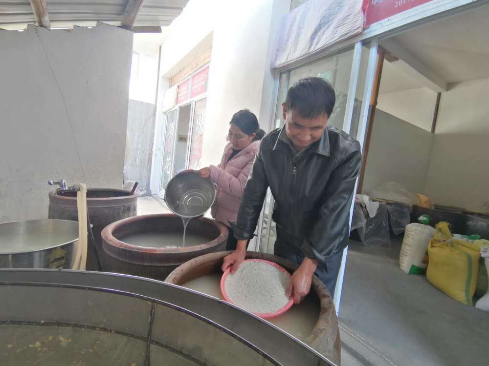 他叫汪建慧,是休寧縣汪村鎮回源村建檔立卡貧困戶。1974年出生的他,患先天性白內障,多處醫治無效。父母因身體不好相繼病故,家裏只有汪建慧兄妹倆相依為命。雖然雙目殘疾,學歷不高,卻他對生活充滿信心。2001年的一天,汪建慧從鄰居收音機播放中得到一條“制做米酒致富”生意經,說制做米酒操作簡單,產品也易保存且不變質,出售利潤也高,汪建慧動了心。說幹就幹,兄妹倆很快在家整理了個製作場所,向親戚借了2千元資金,買來了設備,幾天工夫,一個“酒廠”就建成了。因買米缺資金,同時向當時原汪村信用社貸款1000元,有了流動資金,米酒就正式生產了。