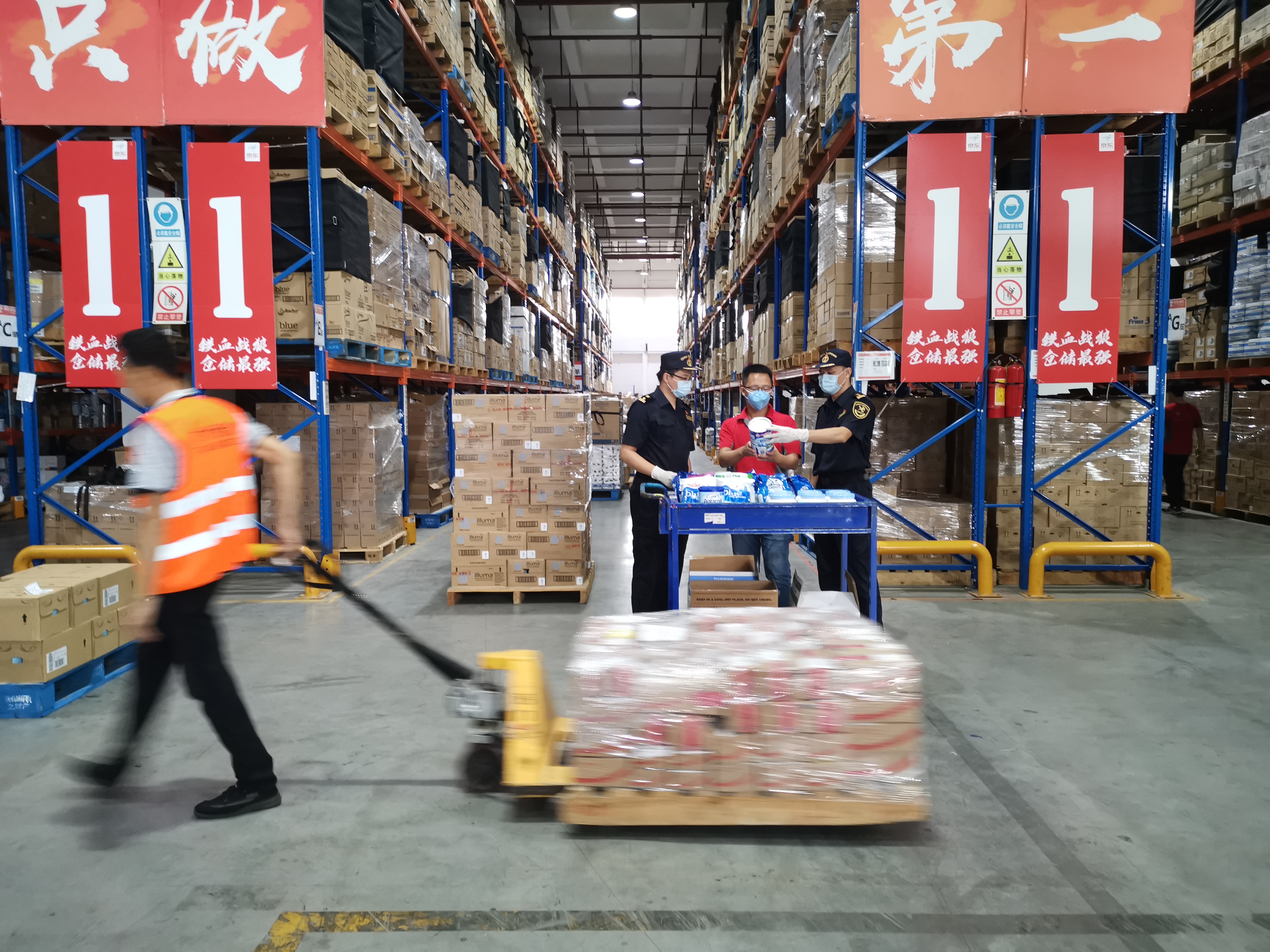 廣州海關所屬廣州白雲機場海關關員在跨境電商企業倉庫巡倉監管