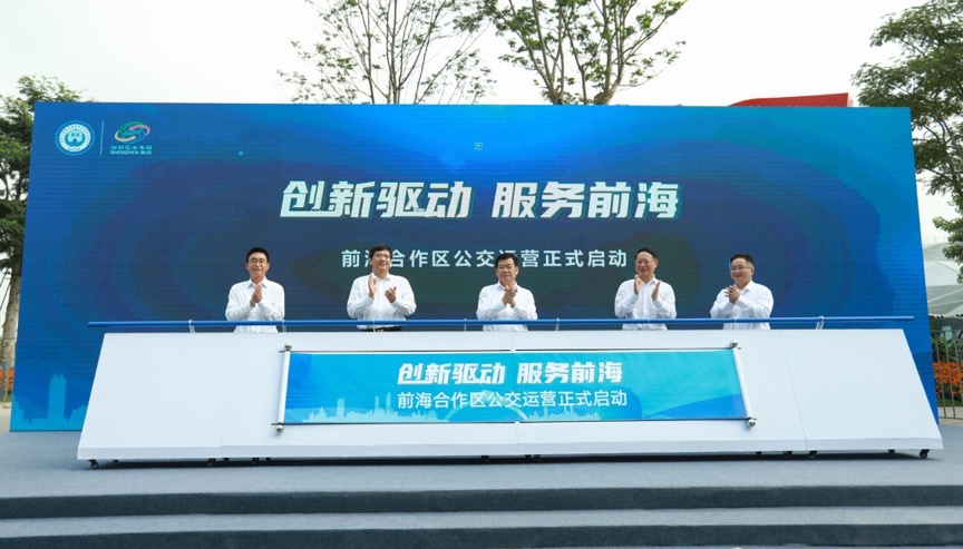 11月10日下午,深圳巴士集團前海深港合作區公交運營啟動儀式在桂灣河公交首末站舉行。深圳市委常委、市政府黨組成員、前海深港合作區黨工委書記黃敏,深圳市交通運輸局局長於寶明,深圳巴士集團董事長戴斌、總經理顧楠洲,前海深港合作區黨工委副書記、前海管理局副局長劉昌松出席啟動儀式。