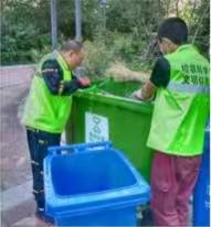 垃圾分類督導員在督導居民正確投放的同時,還會將居民投放錯誤的垃圾從垃圾桶內撿出,並引導居民將垃圾投放到相應的垃圾箱內。