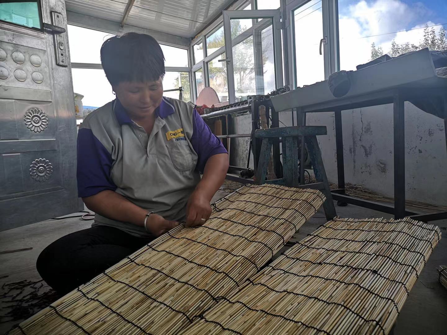 「我們因地制宜,沒有蘆葦資源的村屯由產業園提供原料,農戶賺取手工費;有蘆葦資源的村屯則自備原料編織葦簾,農戶賺取手工費和原料費。」蘆葦產業園負責人關海岩說,「經質檢合格的葦簾再由園區集中回購,統一對外銷售。」