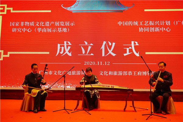 11月12日,由文化和旅遊部恭王府博物館與廣州市文化廣電旅遊局合作共建的「國家非物質文化遺產展覽展示研究中心(華南展示基地)」和「中國傳統工藝振興計劃(廣州)協同創新中心」成立儀式在廣州舉行。兩個國字號非遺中心的學術科研機構花落廣州,標誌着廣州非遺保護工作邁上新台階,也將進一步推動華南地區乃至全國非遺的傳承發展。