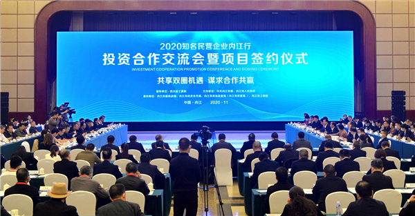 11月11日到12日,四川省內江市舉行「2020知名民營企業內江行」活動,共簽約30個項目,涉及投資金額162.5億元。
