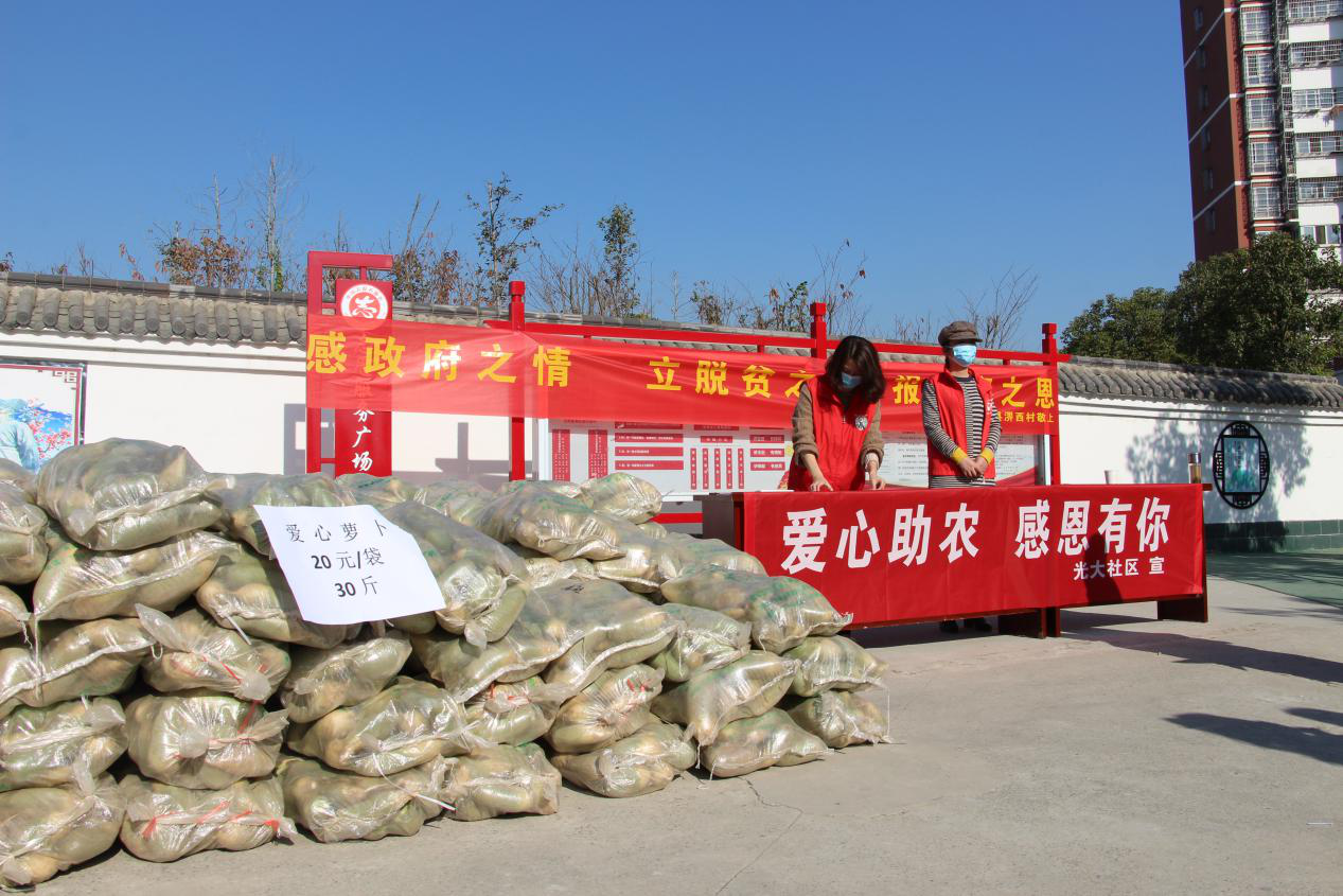 除了組織義賣志願服務,店埠鎮光大社區還積極對接轄區餐飲、超市、企業食堂等單位,搭建銷售渠道,同時購買一部分蘿蔔送到轄區五保戶等困難群眾家中,預計助銷1萬5千斤。光大社區黨總支書記胡義斌介紹說,此次扶貧助銷工作得到了店埠鎮政府的大力支持,鎮直各部門和各兄弟社區鼎力幫忙,預計助銷總量達50萬斤。