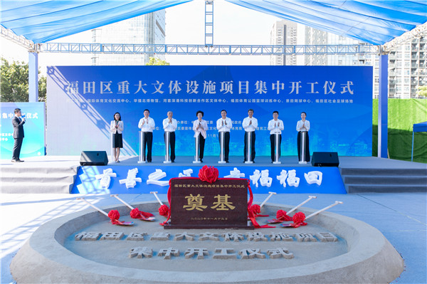 11月13日上午,深圳市福田區重大文體設施項目集中開工儀式在國際體育文化交流中心施工現場舉行。深圳市人民政府副市長吳以環,深圳市人民政府副秘書長劉昂,深圳市文化廣電旅遊體育局二級巡視員韓星元,福田區委書記鄭紅波,深圳市福田區領導劉柏廷、高大偉、孟漫,福田區體育名人、著名網球運動員鄭潔以及文化體育領域、建設企業的相關代表出席儀式。