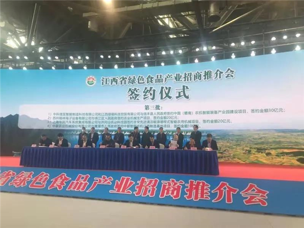 11月13日,江西省綠色食品產業招商推介會在南昌舉行,現場簽約農業重點投資合作項目29個,簽約總額274.56億元。