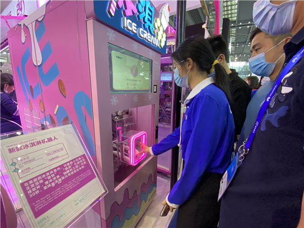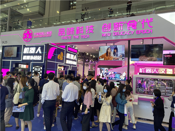 位於深圳會展中心1號館的千璽機械人展位,在本屆高交會期間人潮湧動。做煲仔飯、煎炸小吃、做漢堡、製作雪糕、調製咖啡,菜品還能「從天而降」……科技感十足的餐飲機械人吸引了眾多觀眾現場體驗,只需等候幾分鐘,便可拿到一杯定制的美味冰淇淩。這是碧桂園旗下千璽機械人集團的多款自主研發機械人首次亮相高交會,以「品味科技,創新『食』代 」為參展主題,為高交會帶來一場智慧科技的「食」代盛宴。
