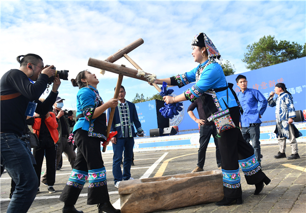 啟動儀式上,新堡布依族鄉黨委書記帶領王崗村、隴腳村、大寨村等7位村支書為庖湯美食、古法造紙、生態大米、繽紛水果進行推介代言。現場還為第一批進入新堡的四家研學機構進行了授牌。