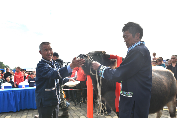 布依迎賓儀式、非遺文創互動、農特品牌市集、謝牛祭祀儀式、民俗文藝匯演、長桌宴、堂火晚會等活動,形式多樣的展示了新堡精彩的布依文化。來自八方的賓朋與當地村民一起品嘗了新堡推出全新定義的「三盤四碟八大碗」長桌宴,感受布依美食味道。