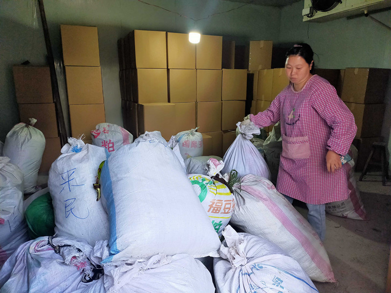 11月14日,在安徽休寧縣白際鄉白際村的一間民房改成的廠房內,懸掛著“休寧縣白際裏白生產農民專業合作社”的營業執照,該戶戶主程仙嬌與當地村民和貧困戶一起在精挑細選一種叫“裏白”野生草。