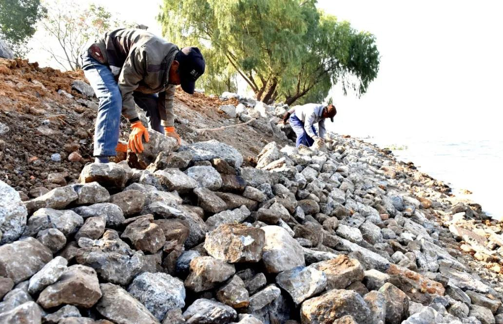 據了解,本次修復進行了方案策劃,其中駁岸修復總長度約1500米,寬5米。修復過程中,採取砌石護坡細石混凝土灌縫的方式進行。