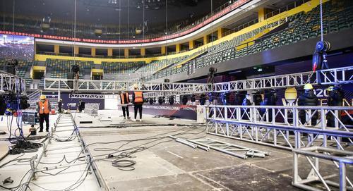 11月15日,記者在鄭州奧體中心體育館看到,本屆國際乒聯總決賽的場館搭建已經基本完成。主背景牆、比賽場地、照明燈光、內場座椅……已經全部佈置完成,透過現場不斷進行調試的炫酷燈光和頗具時尚氣息的動感音樂,屆時定會引起觀眾對本次總決賽的無限期待。