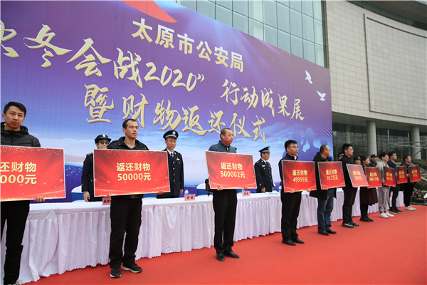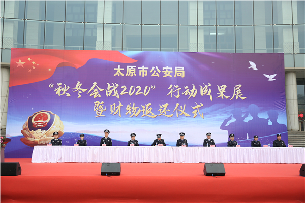 11月15日,山西省太原市公安局隆重舉行“秋冬會戰2020”行動成果展示和涉案財物返還活動。