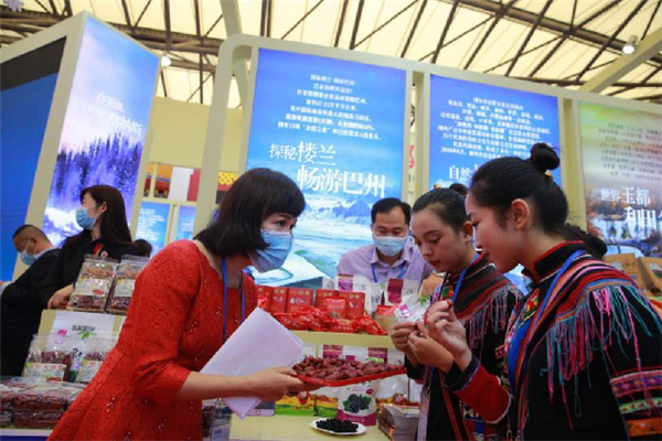 開幕式後,自治區文化和旅遊廳黨組成員、副廳長古麗·阿不力木、自治區文化和旅遊廳旅遊推廣與對外交流處處長張瑞華來巴州展台進行巡展,指導工作。