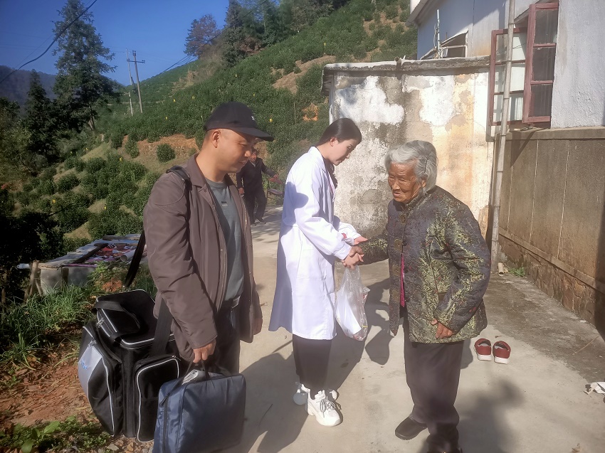 “最近身體怎麼樣?胃口還好嗎?今天鄉衛生院院長也來了,給你做個全套的檢查,你有哪不舒服就和我們說。”在汪根鳳家中,家庭醫生同鄉衛生院的醫護人員,正耐心的詢問老人的身體狀況並認真做好隨訪記錄,不同於以往,此次上門還帶來了專業的體檢設備,這讓老人家不用出門就能享受到血常規、血糖和心電圖等基本的健康體檢。