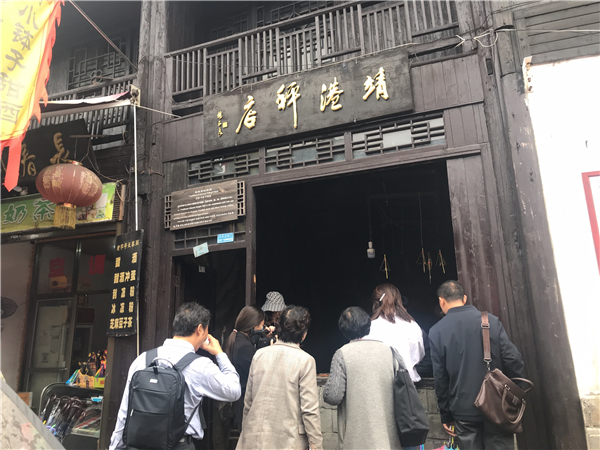 「槓子麵館傍水濱,酒香鬱郁水粼粼。湘軍艨艟仍破浪,飛去飛來不避人。」參觀靖港古鎮後,星島環球網行政總裁兼總編輯、詩人吳再賦詩《靖港古戰》表達對靖港的留戀。(記者 何雯 周芷行)
