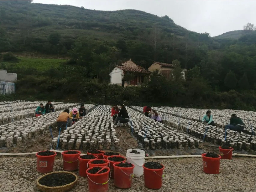 麻子溝村農戶在產業園採摘黑木耳