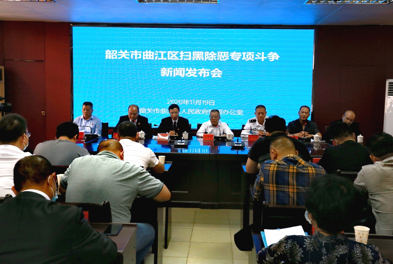11月19日上午,廣東省韶關市曲江區召開掃黑除惡專項鬥爭新聞發佈會,通報全區掃黑除惡專項鬥爭總體情況,詳細介紹「六清」行動情況,並重點通報亂點亂象治理、典型案例、長效機制建設等情況。