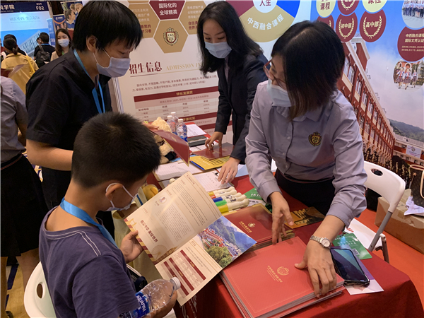 在大會設置的國際教育資源互動展區部分,匯聚了深大師院國際高中、愛文世界學校、新哲書院(原訊得達國際書院)、深圳博納國際學校、深圳國際預科學院、深圳(南山)中加學校、瑞得福國際學校等70+所國際學校參展。展區現場人山人海,展區的各位負責人都熱情地為家長和觀眾們解疑答惑,幫助家長更好地了解學校。