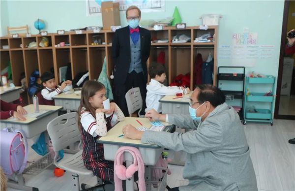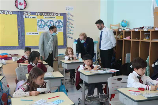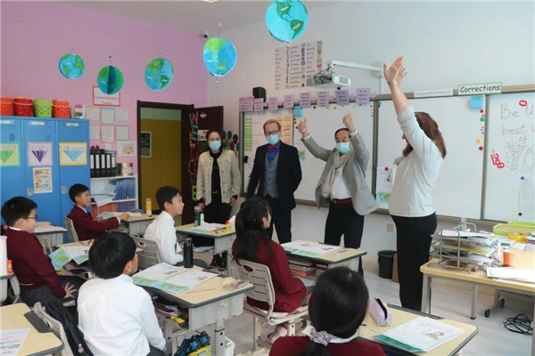 彭博士深入每間教室與教師、學生交談,審核各學段教育教學質量,了解CISS在沈發展情況,對CISS的各項工作給予了充分的肯定。他說,今年上半年,在學校無法如期正常開學的情況下,為了保證學生能夠完成IB課程的教學內容,學校採用視頻教學和網上授課的方式,讓學生在家也能進行學習,老師們為此付出了很多。在這樣特殊的年份里,CISS的正常教學工作能夠不受影響,還受到了學生和家長的一致好評,在外籍人士和外資機構中進一步提升知名度和美譽度,是與大家的辛苦付出分不開的,他代表AKD集團感謝大家。