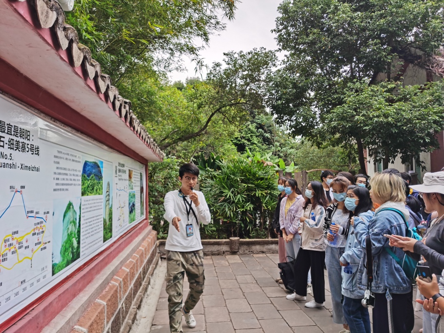 活動期間,學生們在帶隊老師和當地科普導師的帶領下,嚴格做好疫情防控措施,實地走進丹霞山科普科考1、5、6號線,丹霞山地質博物館、丹霞山遊客中心、瑤塘村、斷石村等地就景區管理、智慧旅遊應用、研學課程設計、研學導師培養、遺產地農民生計問題等方面開展考察調研,活動還邀請到了丹霞山資深科普導師為學生見做了走進身邊世界自然遺產的主題講座。學生們主動與科普導師、丹霞山工作人員進行溝通,開展訪談工作,解答自身的在行前存在的知識疑惑,增強自身對專業知識在實踐的理解。