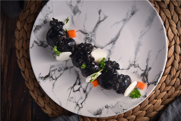 另外,食材搭配的創新是新菜單的又一亮點。「烤長茄·松露海膽汁」,將紫茄炙烤後,滋入名貴松露和海膽汁,山珍與海味在鮮香樸素的茄子中親密融合;「鵝肝涼瓜煎蛋白」,鵝肝搭配滋潤的蛋白與微苦回甘的涼瓜,口感豐富又渾然天成;「蔥香蟹粉灌湯黃花魚」,黃花魚與引味的淮揚蟹粉同時入菜,再撒入香蔥,香氣濃郁而滋補,每日限量三條。「老虎菜溫伴爽口遼參」,則將珍貴食材遼參與老虎菜、蔥、黃瓜、香菜、辣椒,共同切絲涼拌,別有創意的碰撞,口味鮮香辣,完美呈現料理的廣博豐富和別具美味。