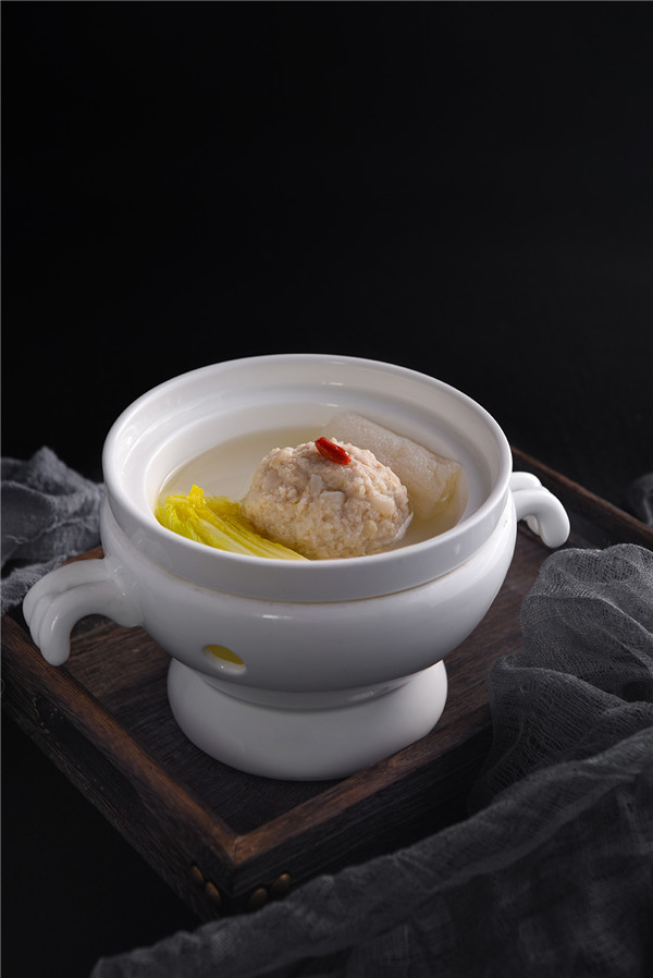 新菜單中看似清淡普通的菜式,亦暗藏餐廳團隊不變的匠心和不凡的製作工藝,如「清燉流心獅子頭」,是董師傅25年如一日孜孜不倦追求品質的代表作之一。清燉的手法配以清蔬上湯,把鮮度提上高點,保留了原湯原味,色澤雪白。而董師傅深知刀工和火候上的分毫差異都會影響到食客的體驗,所以一直堅持以手工切肉,而這也是香樂園出品的獅子頭肉質鮮嫩、清香味醇、肥而不膩的秘訣之一。