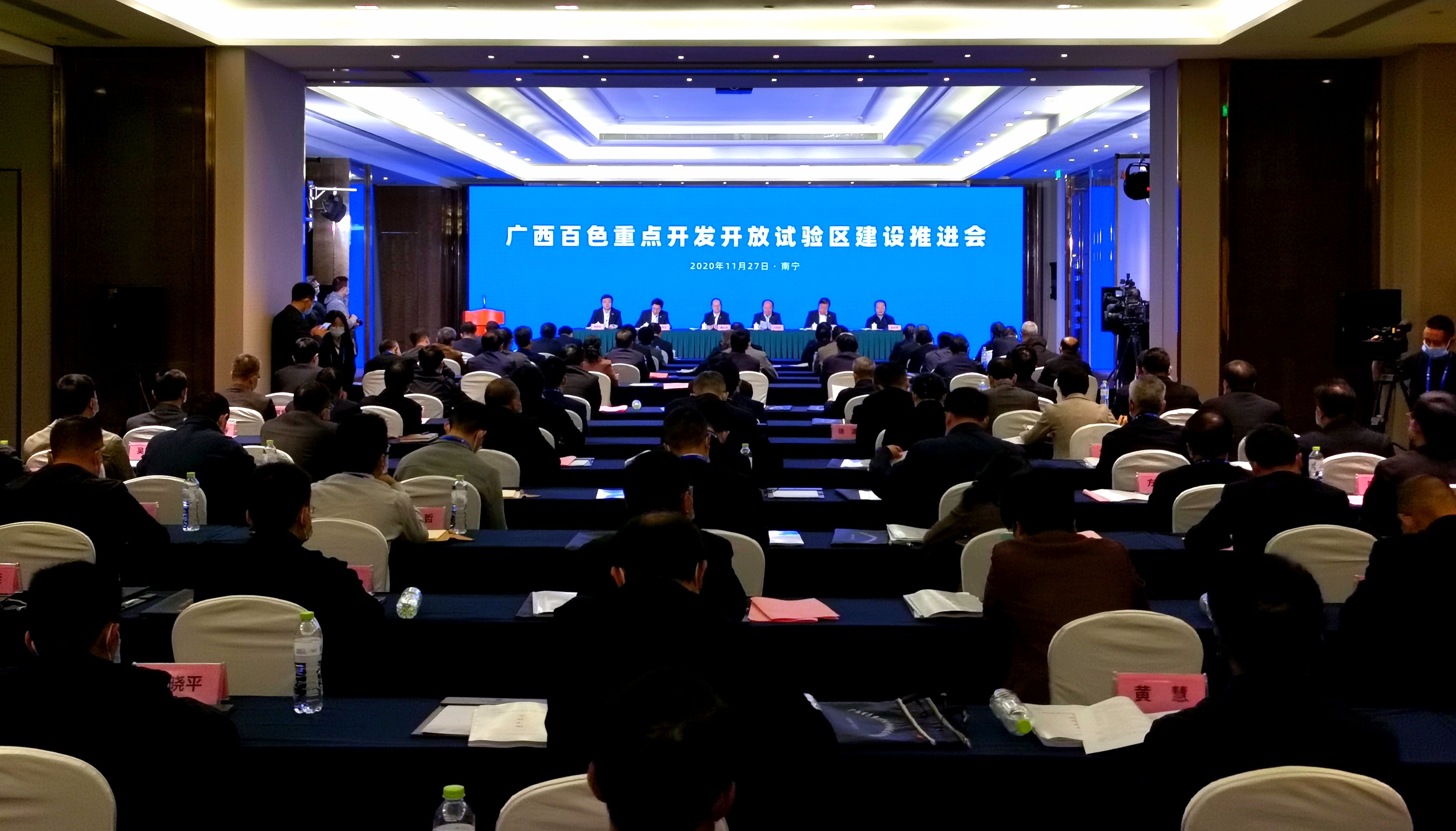 11月27日下午,廣西在第十七屆中國—東盟博覽會和中國—東盟商務與投資峰會召開之際,高規格舉行廣西百色重點開發開放試驗區建設推進會。國家發展改革委副主任、國家統計局局長寧吉喆,廣西壯族自治區黨委書記鹿心社共同為百色試驗區揭牌。