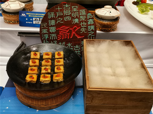 当天現場有八寶全鴨、秘制老鵝等家常菜組成的江南秀水宴,也有以三塔、蓮泗蕩、落帆亭等運河沿線景點為創意製作的菜肴,還有毛豆腐、臭鱖魚等傳統菜肴。菜品豐富,色澤鮮豔,讓人眼花繚亂。