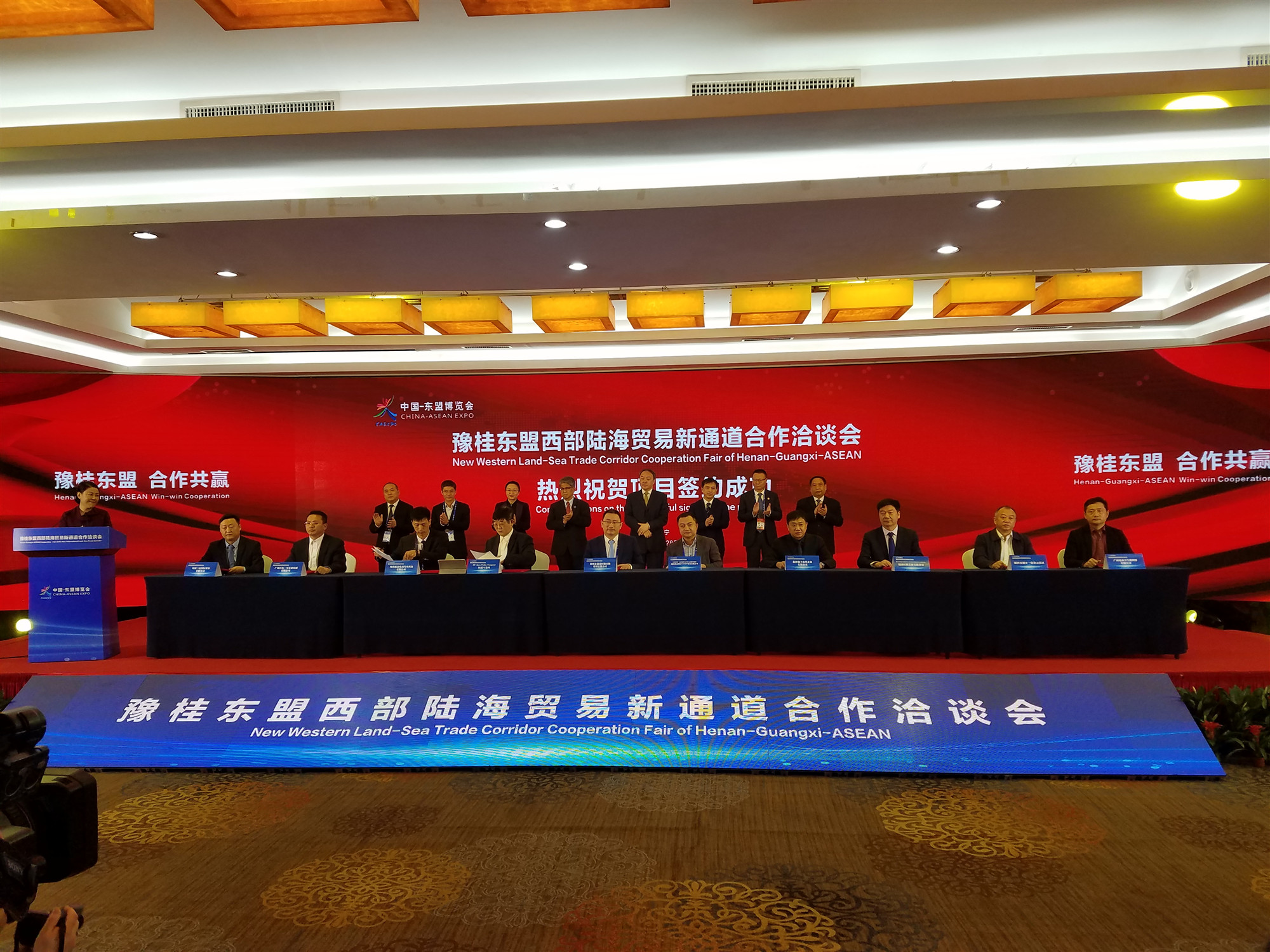 11月28日上午,豫桂東盟西部陸海貿易新通道合作洽談會在廣西沃頓國際大酒店舉辦。河南省商務廳、廣西壯族自治區商務廳、東盟國家駐華使領館及機構等重要嘉賓,共計200餘人出席。