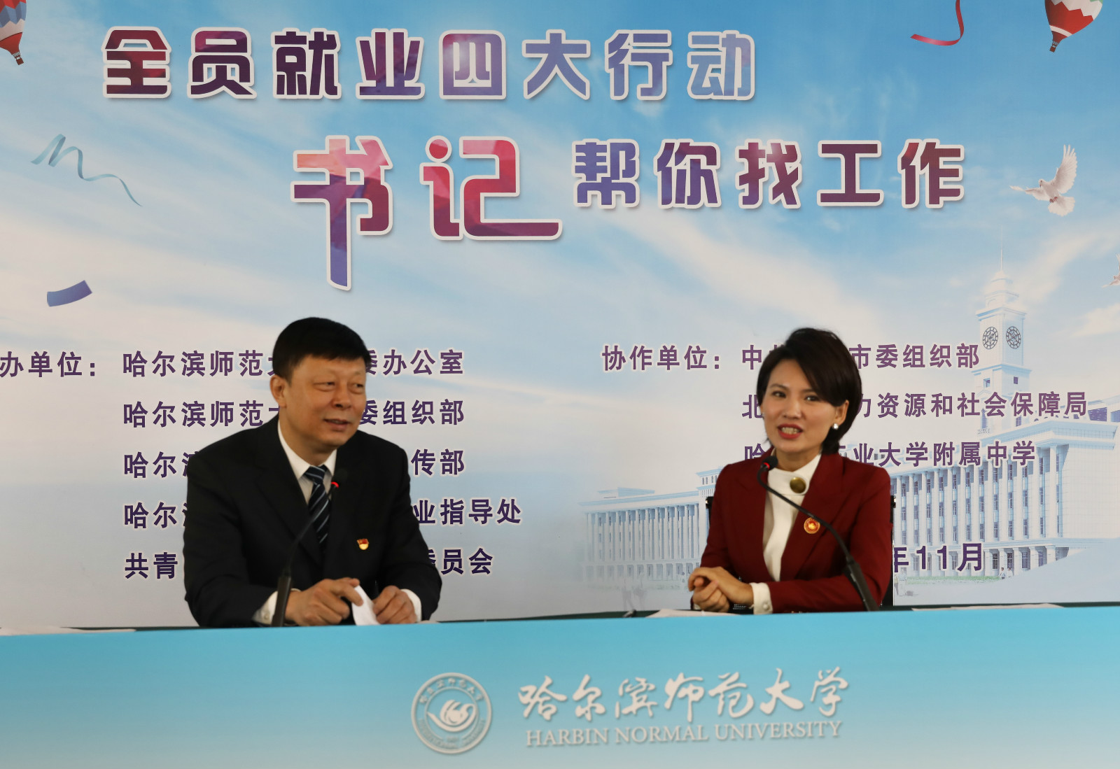 為落實黨中央關於「六穩」和「六保」的工作要求,積極應對疫情防控常態化下的就業新形勢,積極營造全員抓就業、多渠道促就業的工作局面,努力打造「線上」「線下」就業雙通道,2020年11月28日哈爾濱師範大學「書記校長幫你找工作」大直播行動在江北校區圖書館一樓報告廳正式啟動。