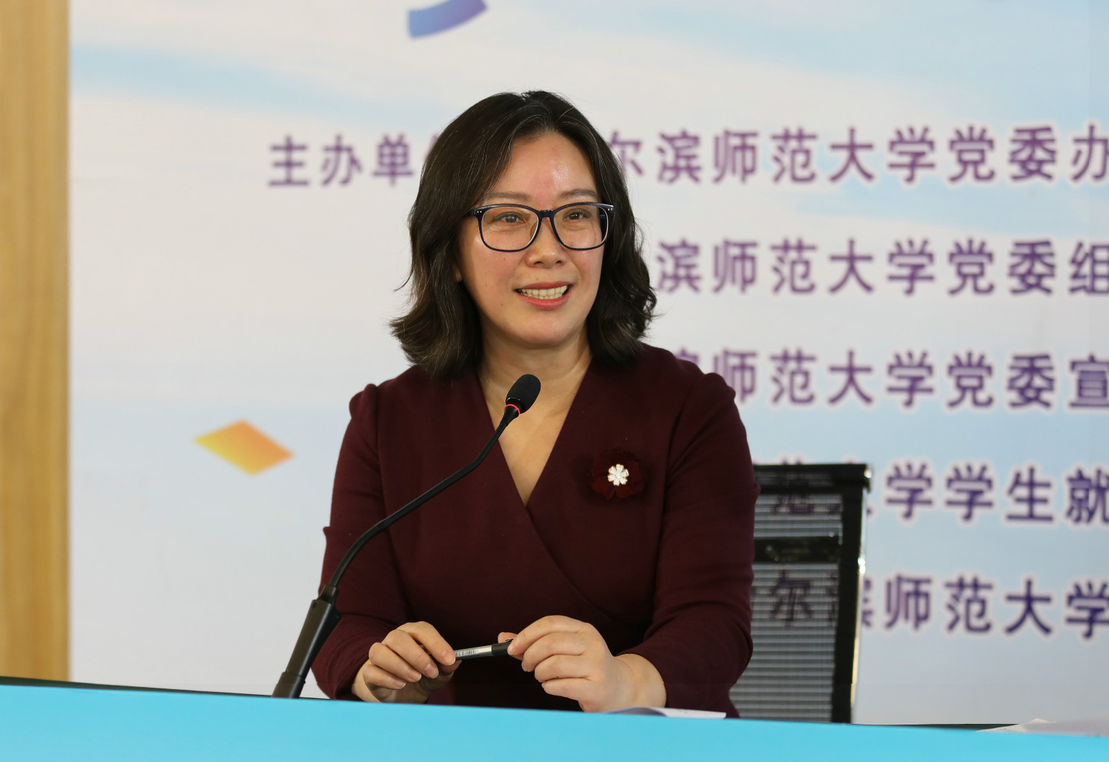 在接下來的直播中黨委副書記郭礫向2021屆畢業生介紹「崗位保存量做增量」行動募集崗位情況,以及「書記校長幫你找工作」大直播首場直播帶崗的具體情況,郭礫就用人單位和畢業生關心的熱點問題與線上「粉絲」進行了深入的交流,在回答網友關於「留省」還是「出省」就業的問題時,郭礫深情地說:黑龍江是我們共同的家鄉,這裏物華天寶,人傑地靈,自然稟賦十分優越,省委十二屆五次全會通過《中共黑龍江省委關於貫徹「八字方針」深化改革創新推動經濟高質量發展的意見》,提出從建設「六個強省」入手,吹響了龍江振興的號角,黑龍江廣闊天地大有作為,黑龍江發展需要大量像你們這樣的年輕優秀人才留下來,我希望在龍江振興的征程上有更多哈師大學子的身影,在東北振興的豐碑上有更多哈師大學子的貢獻。隨後她向畢業生重點推介省內用人單位。北安市人力資源與社會保障局局長邢士軍,哈工大附中副校長張巾英作為黑龍江省用人單位代表介紹了各自單位招才引智的優惠政策,並向廣大哈師大學子發出盛情邀請。