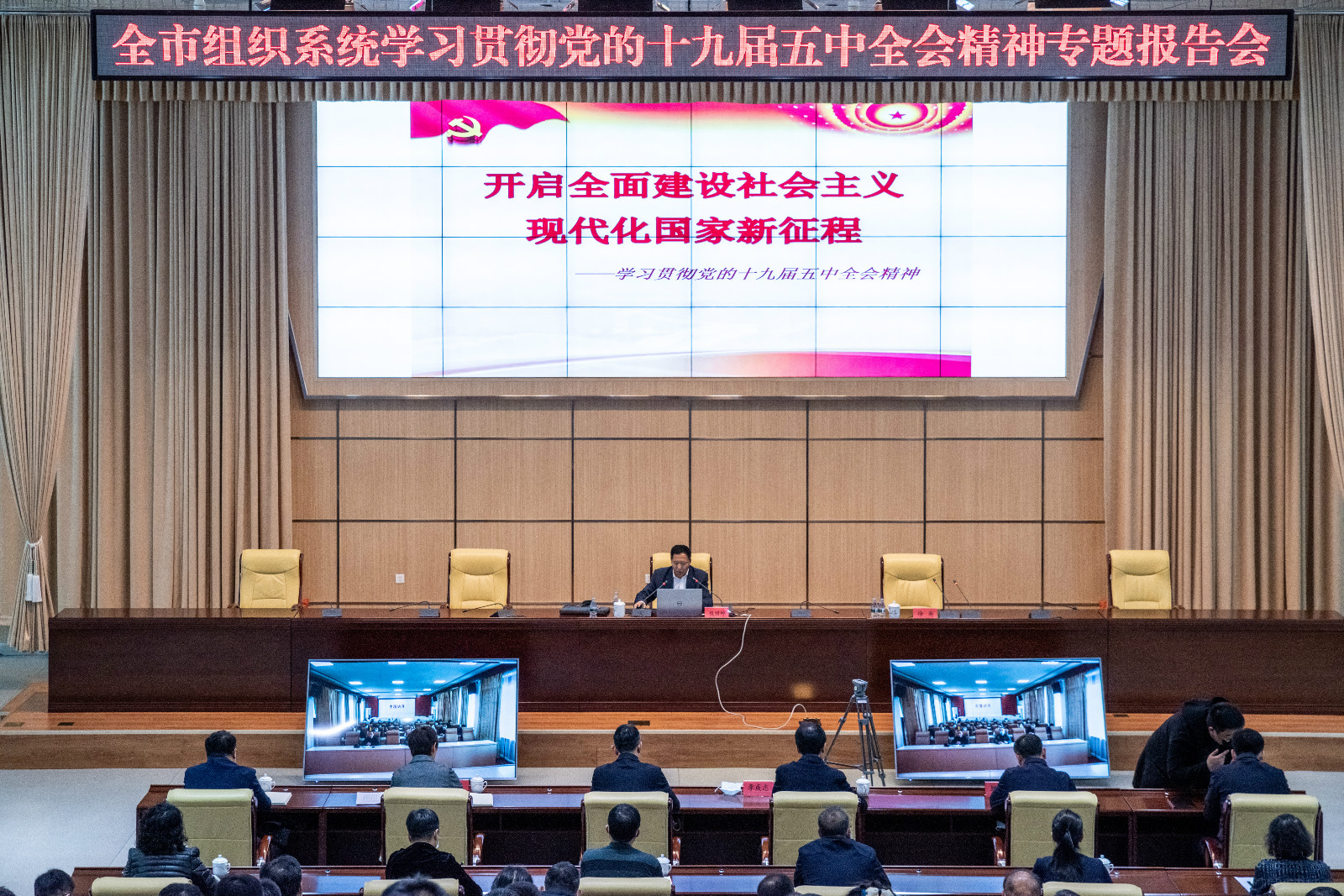 為強化齊齊哈爾市組織系統進一步學習貫徹黨的十九屆五中全會精神,夯實築牢政治理論根基、推動發展理論指導實際、全面提升組織工作效能,11月26日下午,齊齊哈爾市委組織部邀請黨的十九屆五中全會精神市委宣講團成員、市委黨校黨委書記程紹坤同志作《開啟全面建設社會主義現代化國家新征程》專題報告。市委常委、組織部部長李成志、部務會成員及各縣(市)區委常委、組織部部長參加了學習。