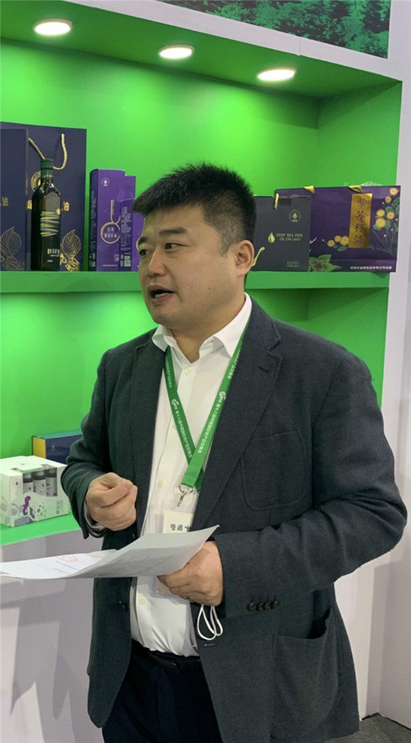 樺南紫蘇園科技發展有限公司是黑龍江省紫蘇深加工龍頭企業,致力於紫蘇研究及產品深加工。有機紫蘇籽油、特級紫蘇籽油、紫蘇飲用油、紫蘇月餅、紫蘇木耳、紫蘇蜂蜜、紫蘇雞蛋……十大類100多款單品紫蘇系列產品亮相農交會,讓記者走進了「紫蘇」世界,令人目不暇接。「你用過紫蘇產品嗎、聽說食用油可以喝嗎?」展會現場孫輝樂呵呵地拿起一款包裝精美的食用油告訴記者,「這就是一款可以喝的紫蘇油。」