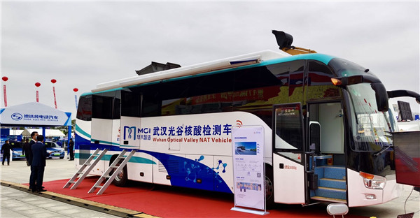 武漢客車製造股份有限公司董事長高濤說,「毫不誇張地講,武漢客車製造股份有限公司與華大智造有限公司聯合開發的武漢光谷核酸檢測車是目前國內最先進、最高效的核酸檢測車。」