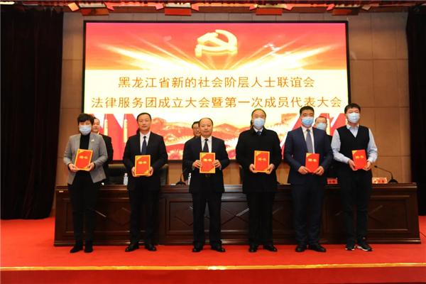 2020年11月28日上午,弘揚法治精神 助力經濟騰飛——黑龍江省新的社會階層人士聯誼會法律服務團成立大會暨第一次成員代表大會在黑龍江省社會主義學院正式召開。省委統戰部徐學陽副部長、省新聯會許洪霞會長、省律師協會李亞蘭會長在會議中致辭。省委統戰部何天新部委、崔雲鵬處長,省新聯會常務副會長張宇暉、副會長張鐵、楊欣、欒健、韓興東及省新聯會法律服務團團員代表共計150餘人參加會議。