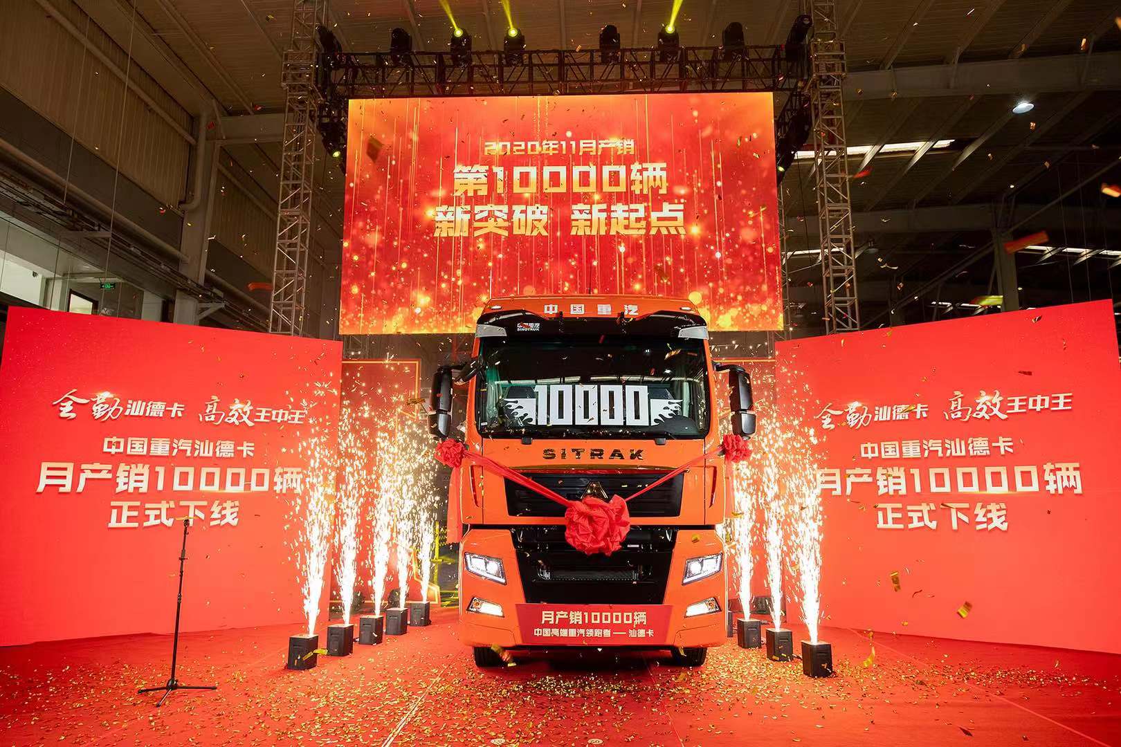 2020年11月30日上午,汕德卡月產銷1萬輛暨交車儀式舉行,這是繼今年3月汕德卡月產銷突破5000輛後,創造的又一月產新紀錄。作為中國重卡邁向高端的引領者,中國重汽汕德卡自2013年上市以來,成為國內上市最早、銷量最大的高端重卡品牌。
