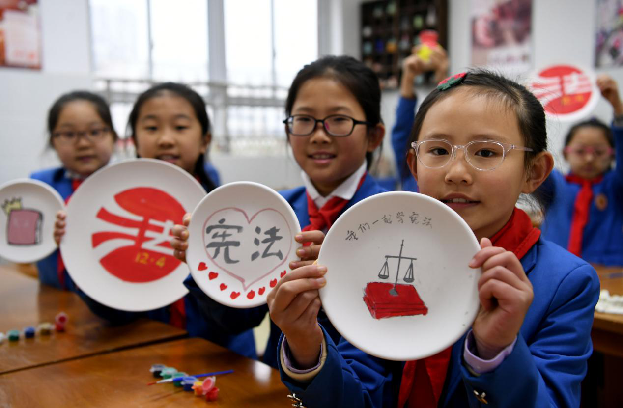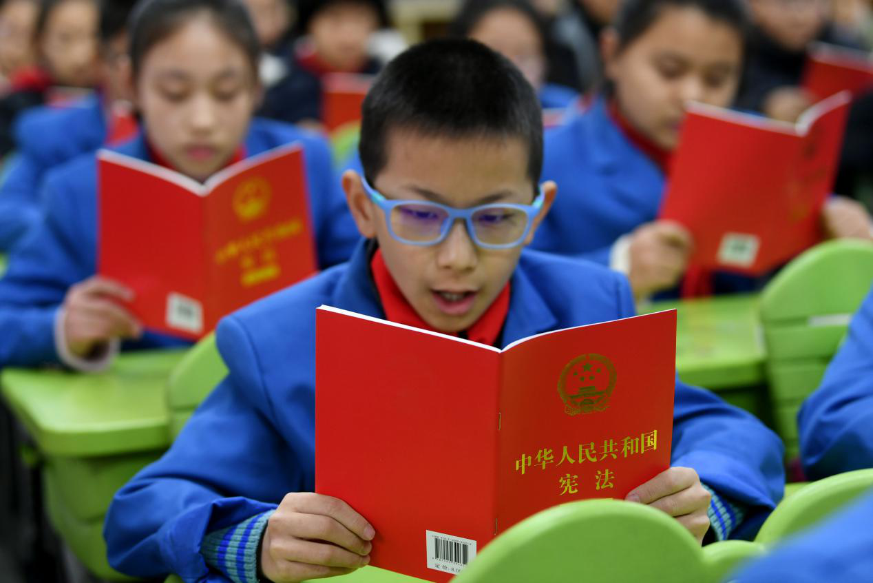 12月2日,在合肥市瑤海區蚌埠路第二小學,小學生在學習憲法(謝琛/攝)