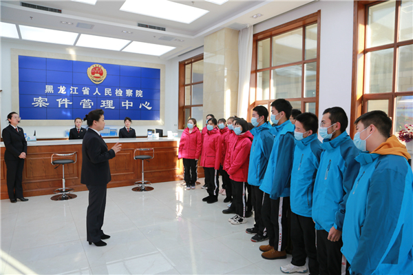 「熱烈歡迎各位全國人大代表、省人大代表、省政協委員,哈爾濱市第七十三中學的老師和同學們走進檢察機關,一同學習領悟習近平法治思想,了解和參與檢察工作,感知法治的力量和真諦。」12月4日,第七個國家憲法日,黑龍江省檢察院舉辦「學習習近平法治思想,強化新時代法律監督」檢察開放日活動。