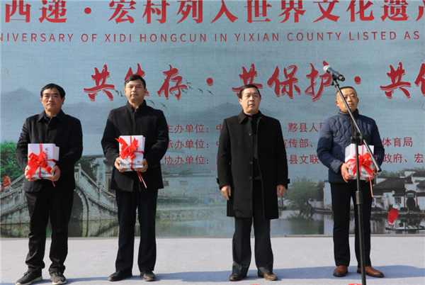 “成功申遺,將中國之黟縣成長為世界之黟縣!”黟縣近期隆重推出了西遞、宏村成功列入世界文化遺產20周年系列紀念活動,包括:11月30日,在西遞景區牌樓廣場舉辦西遞、宏村成功列入世界文化遺產20周年紀念活動啟動儀式,為《魅力黟縣-西遞、宏村世界文化遺產二十周年》紀念郵冊、申遺20周年徵文集《黟韻流香》、雕塑舉行揭牌和贈閱儀式,舉行重溫保護世界文化遺產誓詞儀式等。
