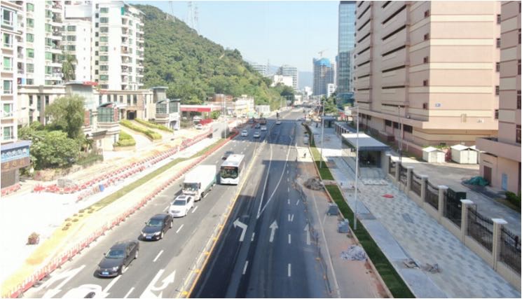 深鹽路作為深南大道的東延線,是鹽田區最重要的交通幹道,是鹽田區城市發展的動力軸。深鹽路由於以往過境交通功能幹道的功能定位,導致存在城區南北割裂、機動車轉向受限、行人與自行車過街不便,全線慢行系統不暢、體驗不佳,道路品質及景觀效果較差等問題。針對上述問題,經組織設計單位和相關職能單位深入調研,結合城市更新和地鐵開通後的未來發展方向,鹽田區對深鹽路的定位和交通方案進行反覆思考和論證,提出了「以人為本,提升慢行」的設計理念,將深鹽路的定位從過去的過境交通功能幹道轉為城市生活性幹道。