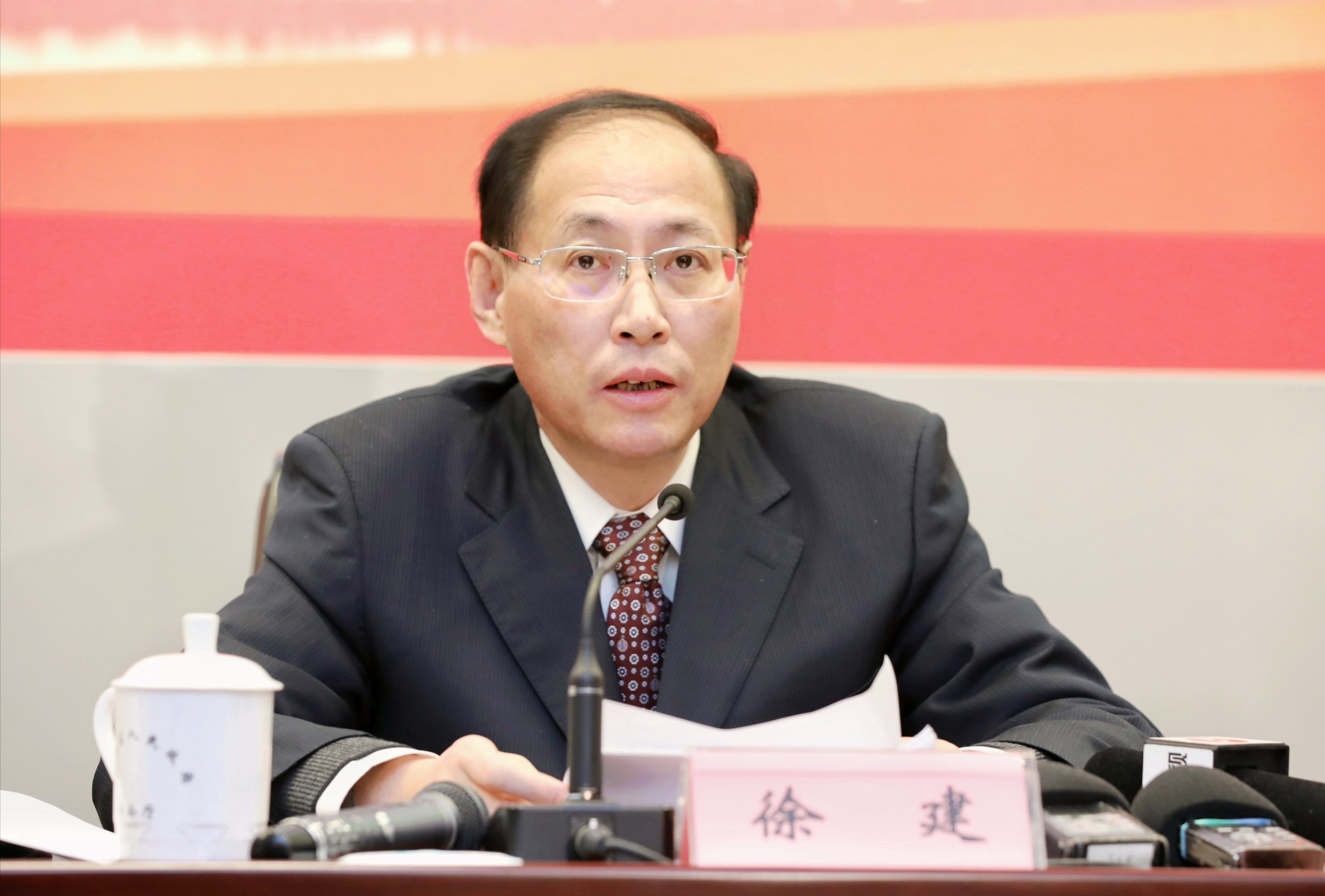 安徽省委組織部副部長(兼)、省人力資源社會保障廳廳長徐建介紹相關情況(李軼晗/攝)