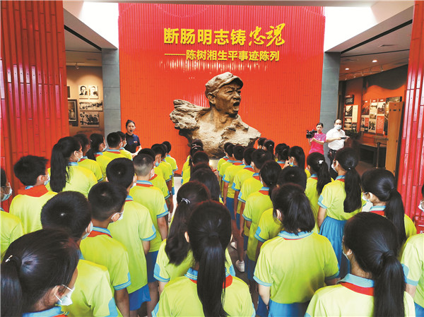 道縣將開展「走進紅色課堂、傳承紅色基因」主題活動作為深化新時代愛國主義教育、培育和踐行社會主義核心價值觀的重要舉措,讓陳樹湘「斷腸明志絕對忠誠」的英雄事蹟走進校園、深入師生。為此,道縣在陳樹湘犧牲地石馬神村建起了「樹湘小學」,在陳樹湘紀念地瀟水河畔建起了「樹湘中學」,並培育了紅色小講解員100餘名。同時策劃在紅軍長征途經的各個鄉鎮建立一所紅軍學校,並計劃選取其中一些紅軍學校與長征沿線其他節點城市小學結成姊妹學校。在全縣所有中小學校開設紅色教育課程,做到每周確保有一節紅色文化輔導課,積極探索在中小學生中開展「十個一」的教育模式,即:穿一套紅軍服、參觀一次陳樹湘烈士紀念館、舉行一次祭奠英雄儀式、上一堂紅色教育課、唱一首紅軍歌、看一場紅軍影片、重走一次紅軍長征路、吃一次紅軍餐、開展一次紅色體驗教育活動、寫一篇紅色體會日記。通過「十個一」紅色課程教育,促進全縣愛國主義教育落地生根。(唐勇平 李銀明 張穆宸 周鏡忠 盤林)